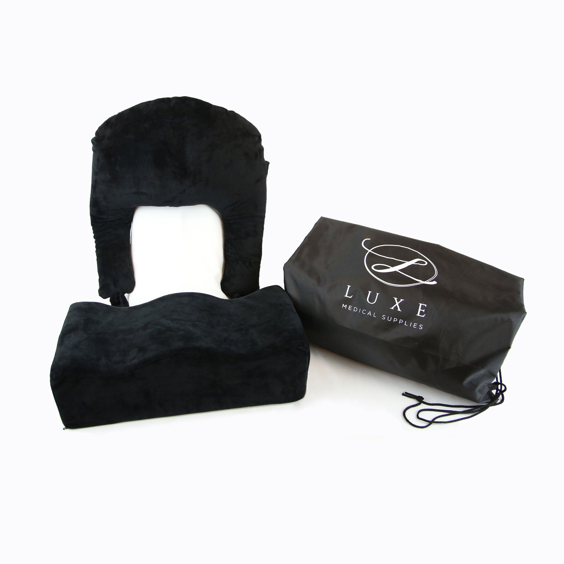 BBL toilet pillow and back support set includes a carrier bag